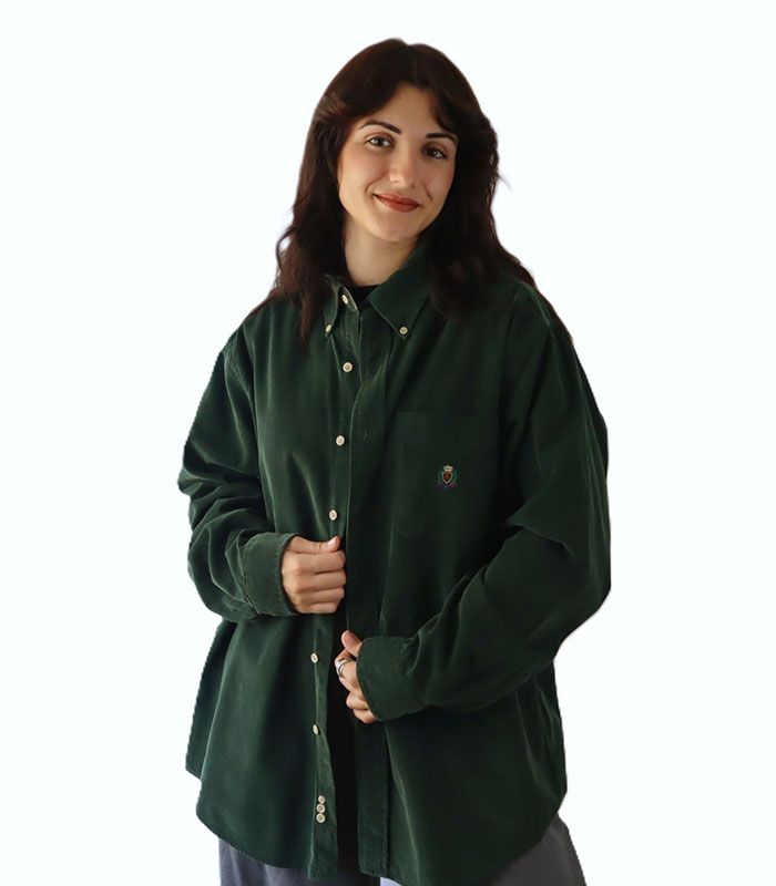 Vintage Unisex Corduroy Shirt | Long-Sleeved | Forest Green Colour | Excellent Condition | Hunt Club | Made In Jamaica | 100% Cotton