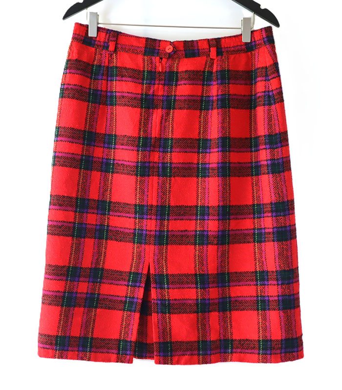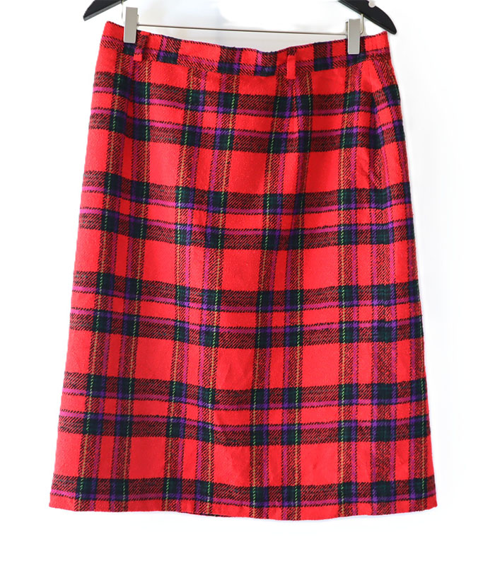 Vintage Checkered Skirt With Zipper | Red Colour | Excellent Condition | Made In Germany | Lucia | 95% New Wool & 5% Polyamide