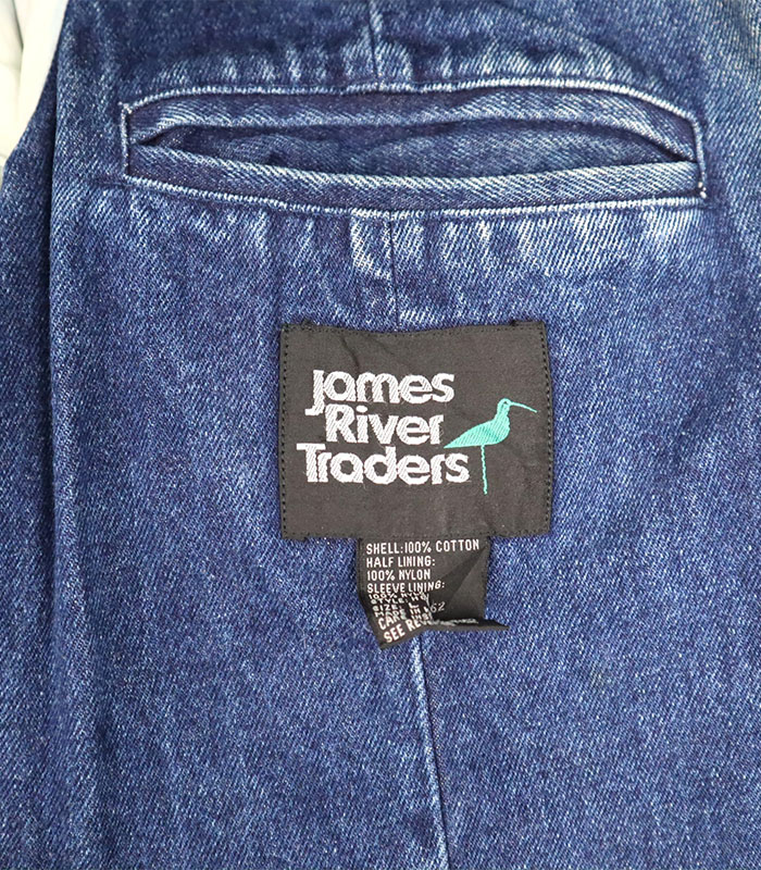 Vintage Denim Jacket With Buttons, Pockets & Inside Pads | Long-Sleeved | Dark Denim Colour | Excellent Condition | James River Traders | Made In Hong Kong | 100% Cotton